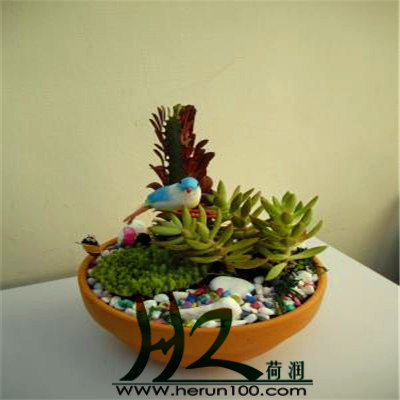 1,迷你型:多肉植物组合;观叶植物组合。只要是以卡通类迷你植物为选材,创意搭配。使我们见到的卡通植物有了全新的面貌。适合摆放在办公桌上,也是小礼物赠送的首选。